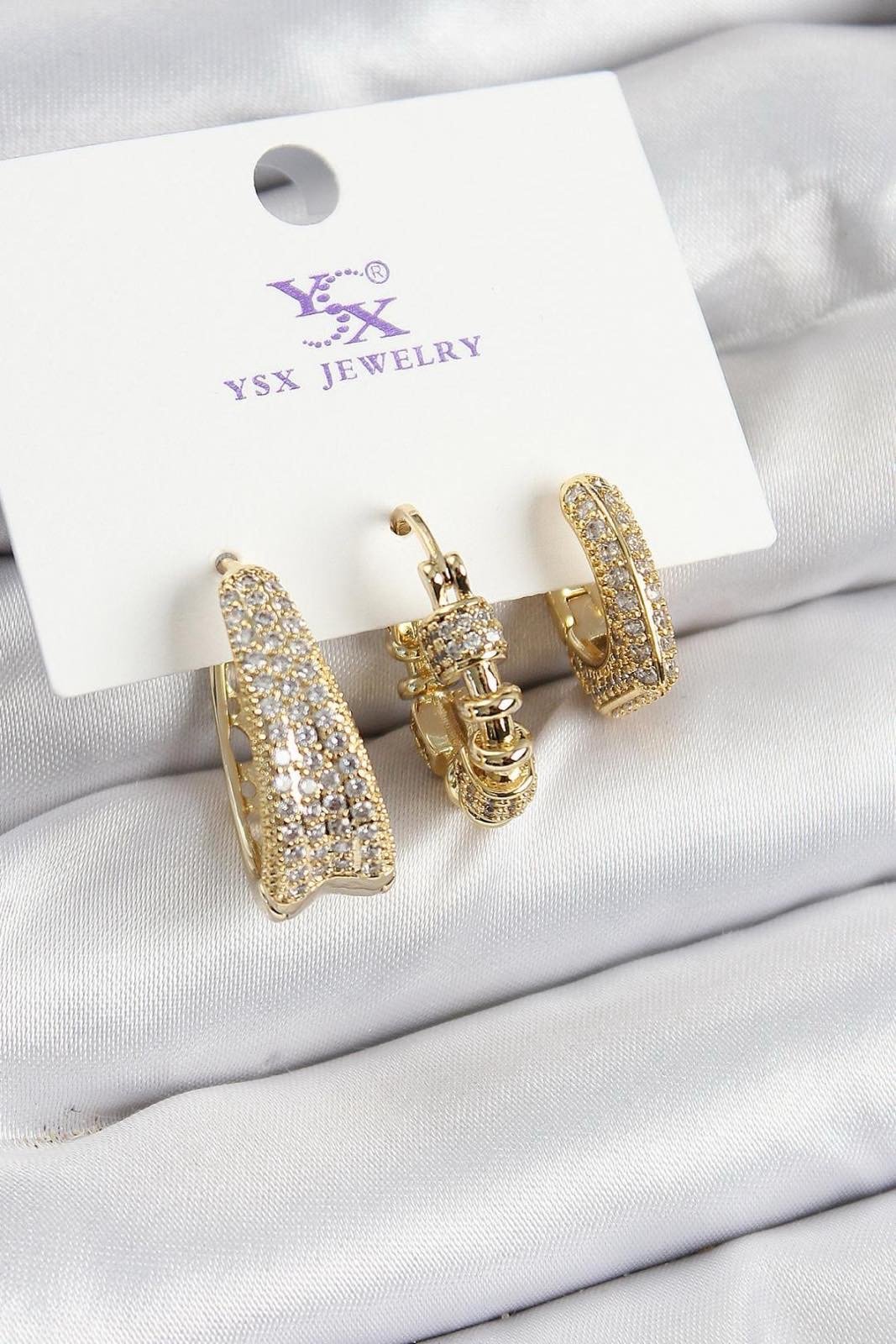 Dieses edle 3er-Set aus goldfarbenen Ohrringen verleiht jedem Look einen Hauch von Luxus.
